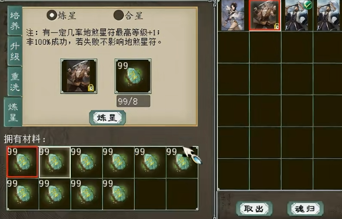 玩家购入一张双克火的大话西游2青龙星卡,看下需要多少炼星石能升到十四级!