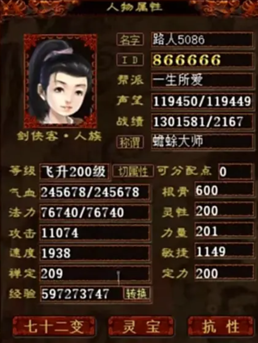 这兄弟也就是没带仙器,不然肯定能上一线队伍了!来欣赏一枚十六级极限大话西游2男人号,忽视混高达49,强混74,装备细节几乎无可挑剔! |