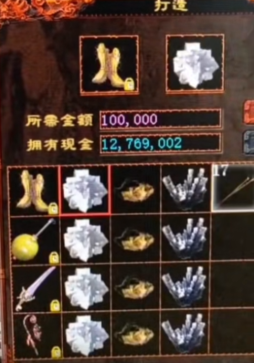 玩家准备了四件大话西游2神兵开砸,分别是人法步定、致命破、连击破和双回,这可值不少钱啊,今天就看雷哥心情如何,直接走起来! |