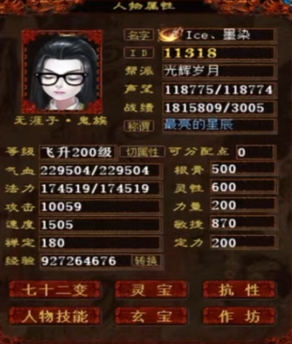 今天给大家欣赏一位非常给力的大话西游2克水秒鬼,没想到鬼族也能爆发如此高伤害,咱们就从属性看起吧! |