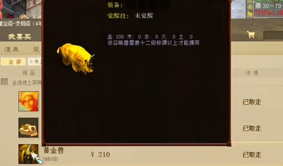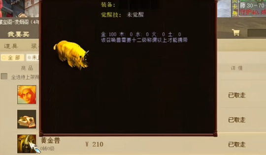0转0级的黄金兽卖了210?