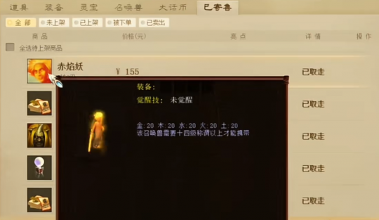 当初,0转0级的赤焰妖竟卖了155?