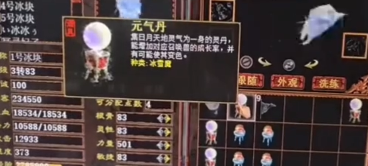 玩家准备给几只大话西游2召唤兽吃元气丹,看下能有几只变色?话不多说直接走起!