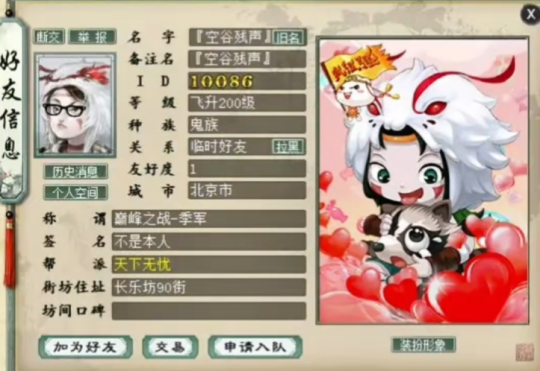 大话西游2“优衣酷”战队的实力,那真的是一等一的强,今天就来欣赏一下队中的主力男鬼——“空谷残声”的部分物资,看看这位巅峰定海神针的底蕴! |
