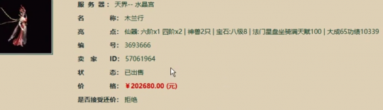岁末年终回归不断!今天这位回归江湖的兄弟,花二十万元买了一枚大话西游2女龙号,思来想去,还是龙族的可玩性颇高,下面就来看看这个号上有哪些亮眼物资呢? |