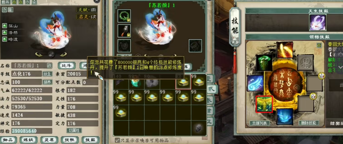 美女玩家修终极啦,她准备了近千枚大话西游2终极修炼丹,准备修两只龙兔宝宝,看能不能修出化无终极?