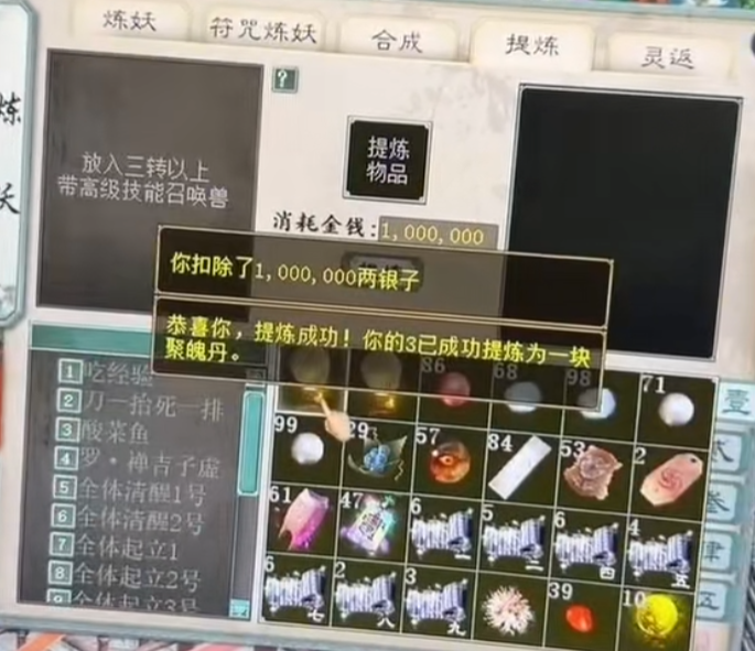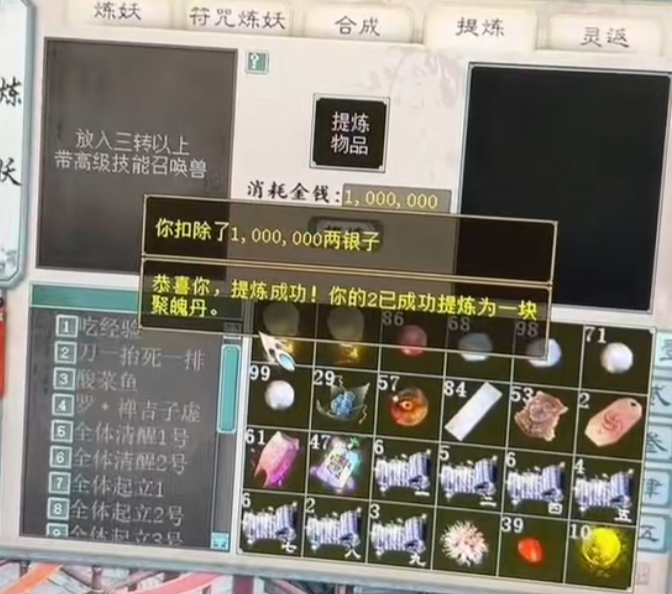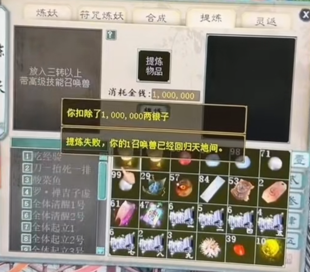 这日,玩家买了九只大话西游2召唤兽,准备提炼一波找点乐子,咱们看看最终能成功几只?