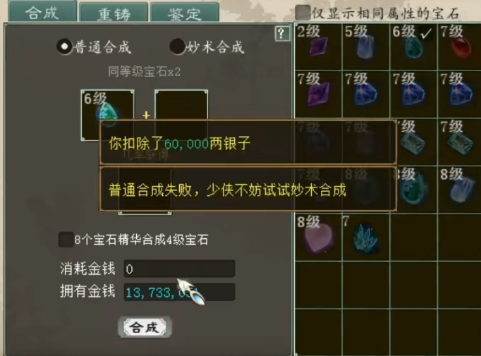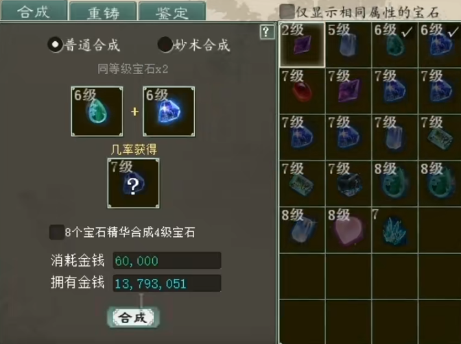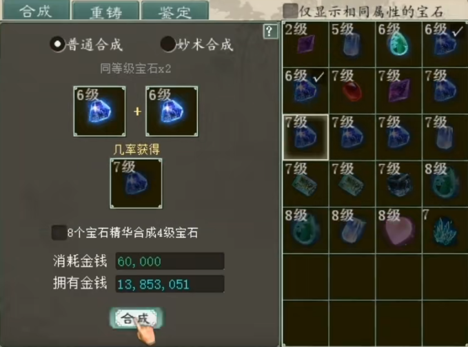 兄弟攒了好些大话西游2师门宝石,今天准备来合一波,看看能不能给装备提升一下!