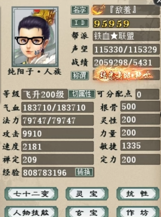 花120万打造的大话西游2男人号,数据相当漂亮,站街忽视混50.6,强混68.8,但据说这个号只拿来做任务?这就过分了吧? |