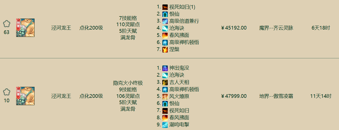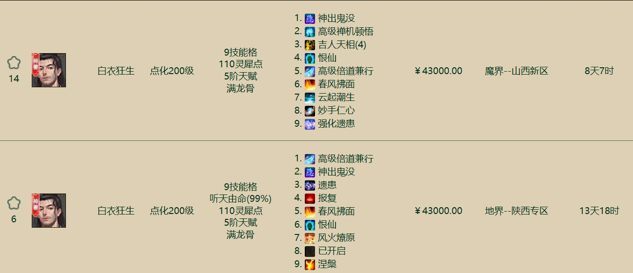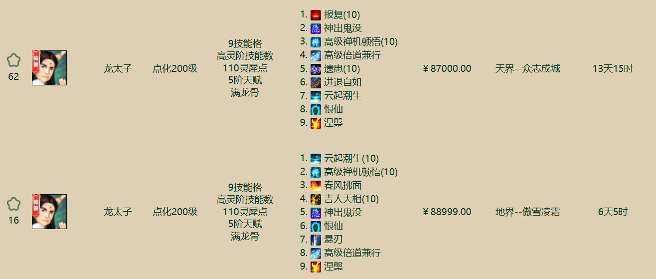 大话西游2超经典人型神兽集合!当前市场售价大起底