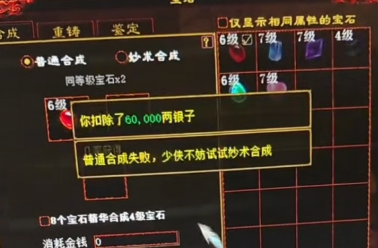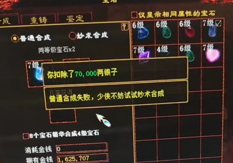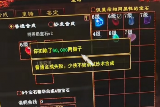 老铁身上的6级、7级大话西游2师门宝石,可是多年的心血积攒,今日感觉运气不错,准备拿出来合上一波,也好提高一下自己的装备实力! 这下好了,装备没提高,宝石也没了!怎么办...... [编辑:zmncd]