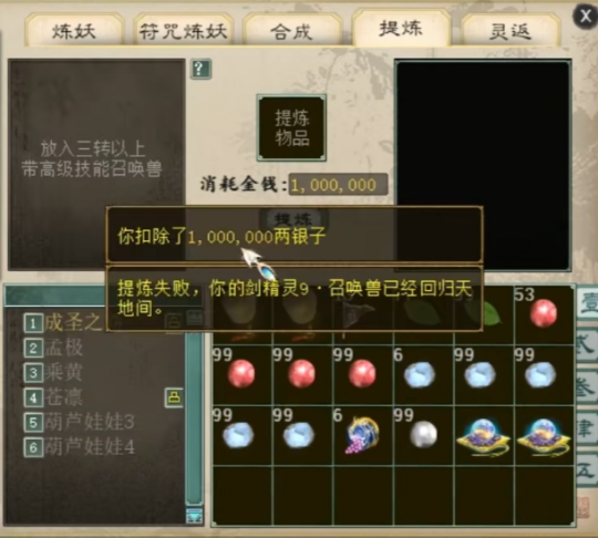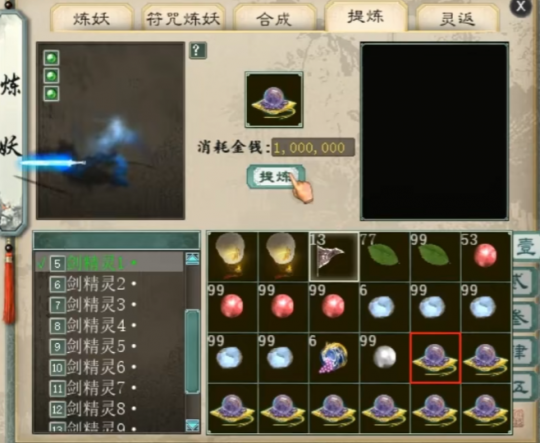 大话西游2提炼四十五只剑精灵!五开兄弟大手笔进击