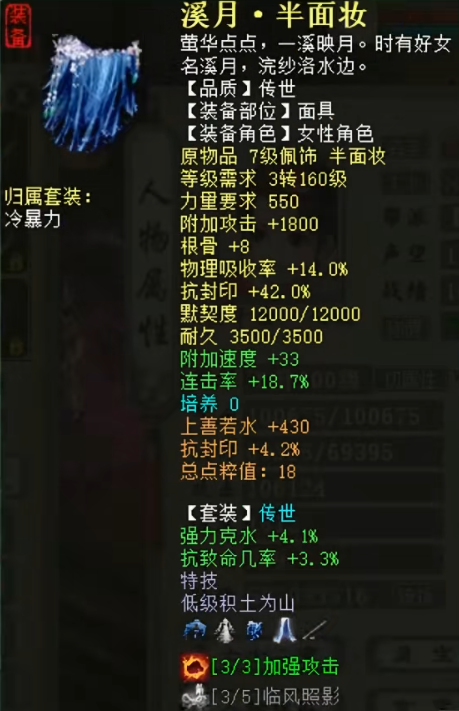 除了鞋子外,其余都是高级装备,兄弟们觉得这枚女鬼的游戏体验感如何呢?