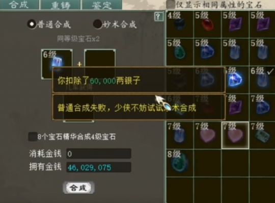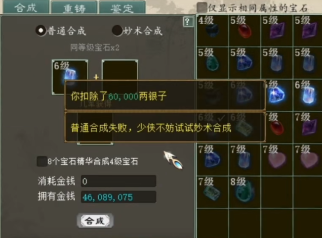 一玩家攒了些大话西游2宝石,感觉今天能上,于是准备来合一波,来看下他预感准不准?
