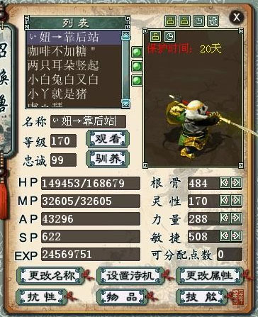 受限制不让发那么多的图片,所以只能一天发一点,下面是女鬼,主控制号,3世男人转,抗性够了,所以没怎么培养配饰。 属抗