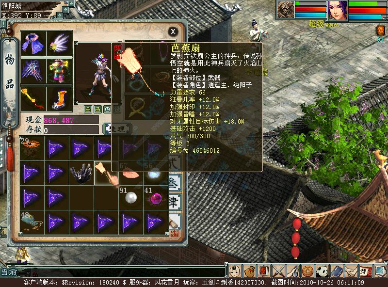 6月到10月给了4个SB,女人强毒的卖了(4000万),五彩(自己用了,成功冲到4)。 我的内心久久无发平静下来的原因是老天眷顾我,给了我2 把属性相同的芭蕉扇(强封睡的)我自己的小号马上2转了,想玩回男人。 结果呢?大家自己看把(哥失眠了,严重失眠。求安眠药!) |