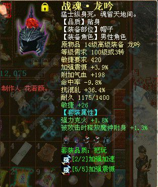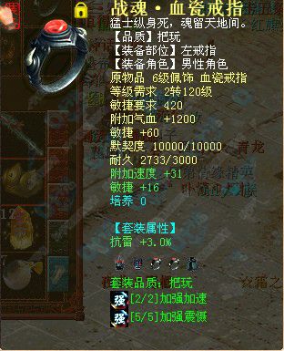 男魔极品套装:战魂。西游记服务器的第一套战魂,并且套装属性能加敏,这样大大提高超敏男魔的敏极限: 相关链接:器定乾坤:套装技能搭配查询器第二版发布