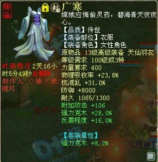 这三件套,搭配个普通加成武器,就很爽,不信你看看: <<<点击进入大话西游2论坛讨论>>> [编辑:星陨]
