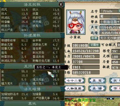 我自认为很牛X的装备属性图,大哥们,小弟上装备图,属性图看好几个数据:强盘23.4,血16.5W+,敏1940+。 >>推荐阅读:比武大会决赛:惊现灵宝天蓬转世 450高分F混,F混率54.2,抗虫子4500+,抗鬼火55+抗混145抗冰157 我的天啊,还有这只是针对单残梦鬼用的,卡可以换成物理的。看情况可攻可守。 下面说下我选择450力量敏女魔的原因: 第一:我是选择的450力量,优点在于强盘23,仅次于5阶500根骨仙器;第二:我加450力量是为了吃高级分裂F;第三:我是属于控制不属于杀伤,我还怕我砍死被拉起来。 没有仙器我必须考虑强盘,强盘必须考虑力量要求,咱是平民,我只能说。我号全部物资不值4000元,但我一直在5阶队混,后期跑4阶队做队长,但我们也取的了三场不参加水路赛季完65名的成绩,前天还把勇士队皇宫干了。 <<<点击进入大话西游2论坛讨论>>>