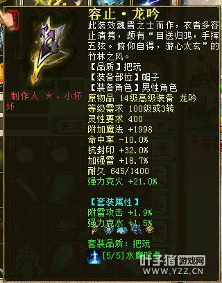 套装名称:容止(女性-惊鸿) 装备角色:男性角色 套装构成:帽子 面具 衣服 腰带 披风 套装技能:水魔附身(5件):自身五行属性为水100,不论变身卡、吃属性药都无法改变(战斗中可被五行克和无属性克技能改变),额外增加强力克火20%~100% 套装出处:普通-覆海大殿 卓越-覆海大殿 >>推荐阅读:挖宝直播第三期:平民玩家玩心跳挑战鸡驴 首先我感谢北斗家族的成员陪伴我日夜刷套,大家辛苦了。 我先前刷出了容止套,由于是把玩的,只有一件是传世,所以效果不是很明显,现在把玩增加20的强克,要是全是传世就能增加到100%强克,估计很变态。不过容止套可以改变外观造型,还有就是你无论变什么卡,五行属性都是水100。这个好处就是可以不受变身卡的限制了。下面我展示下截图: <<<点击进入大话西游2论坛讨论>>> [编辑:no魂断蓝桥on]