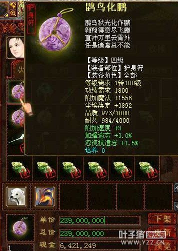 护身符的价钱也在一些服务器非常火爆,特别是一些刚开的服务器更是如此。日前,我们就留意到一个敏忘鬼用的护身符,但是售价嘛,高达2.4亿,如果按照100:4000的比例那就是600块了。那么对于这样一个护身符,到底值不值呢?