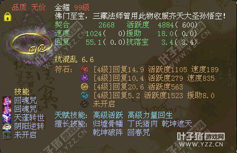 灵宝现世,全无敌! >>推荐阅读:小伙伴们!快带上你的灵宝去单挑地煞星吧 如今的PK、任务、甚至杀星都因为灵宝的出现而发生了翻天覆地的变化。 而其中辅助性灵宝用它特有的实用性和华丽技能让人不敢小窥。 现在我们就来回顾一下那些让我们眼前一亮的的辅助灵宝。 <<<点击进入大话西游2论坛讨论>>>