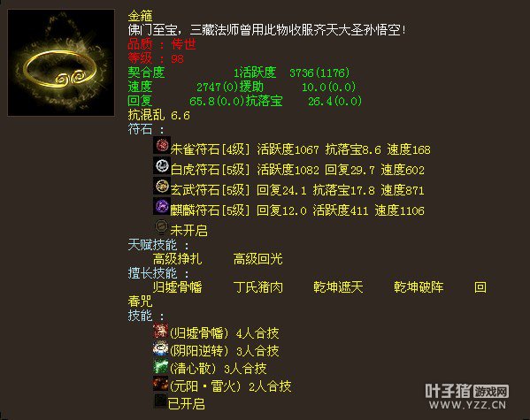 作为顶级辅助灵宝,金箍有着和幌金绳不同的作用,但是同样非常强大! >>推荐阅读:加敏48女衣横空出世:敏系必备之高敏套装 <<<点击进入大话西游2论坛参与讨论>>>