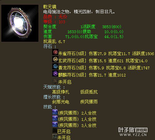 自从灵宝出来以后,有几个字频频曝光在大家眼中,“乾元镜” ,它是一个擅长疾风骤雨技能的攻击型灵宝。 >>推荐阅读:4月25日冲新区拿龙马 你还不组队来抢? 灵宝出现有一段日子了,大家都为自己心仪的灵宝耗费了大量精力和财力,什么丁氏猪肉,乾坤遮天,逆天技能也都刷了出来,但是这些相对触发的几率不高,都是几人合计,而比起辅助性灵宝,一些中级攻击型灵宝走频频强人眼球,特别是乾元镜。以其高敏,高伤害有几率秒杀敏魔和年兽的霸气侧漏叫大家为之惊呼。 那么哪里能够买到这等宝物呢? 这位兄台,你运气真好,藏宝阁中刚好就有此等宝物,那么就让我们来看一看藏宝阁中的那些霸气的乾元镜。 <<<点击进入大话西游2论坛讨论>>>
