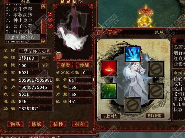 大家随便看看,修正是女魔修正,天赋没怎么点就27点,功绩2700+够用5级的,坐骑满了4个,孩子已经神结局,套装该有的都有,只是没有去收录。 >>推荐阅读:这武器真的值3E?那些强悍的仙用强克装备 <<<点击进入大话西游2论坛讨论>>>