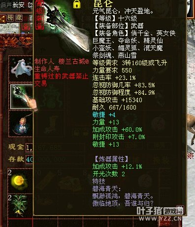 自装备办展开极品武器,超级克武征集后,一时间不少玩家纷纷发图展示自己的或者自己见到过的极品武器,更有甚者还拿出了一些收藏已久,值得流传的武器。 >>推荐阅读:我们是一群老男孩寻找一名情投意合的女魔 而神器的诞生往往就只有那么一两把,比如天蝎座那把大力女人专属的加成附混的,比如加成克水大力魔的,比如加成90多的超级大力武器。 <<<点击进入大话西游2论坛讨论>>>