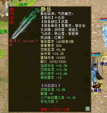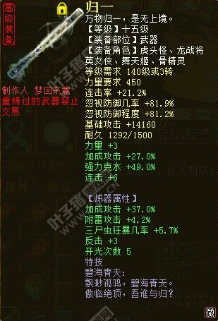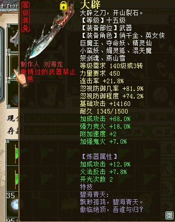 昨晚的大闹你闹了多少分呢?是不是跟我一样,闹完直接兑换原料开始炼化呢? >>推荐阅读:又一土豪告别大话:超豪华物资打包求带走 似乎每一个周四的晚上11点我们总能看见一些朋友在管家处收原料,各种搞价的都有,人来人往熙熙壤的。其实他们只不过是追求极品的炼化,梦想能练出一个神器,诸如下面这些都是非常诱人的,大家可以观摩一下!有的比神兵和5-6阶仙器属性都好! <<<点击进入大话西游2论坛讨论>>>