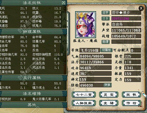 大话西游2四年内区飞升159男魔 神兵破魔双敏属性