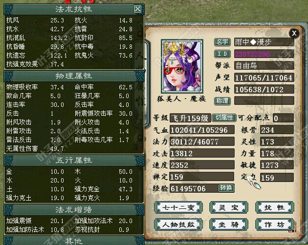 大话西游2四年内区飞升159男魔 神兵破魔双敏属性