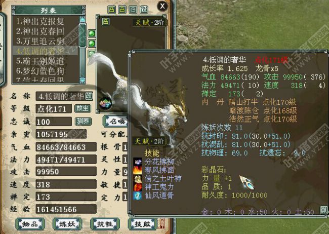1至4年区飞升159,经验点可以升到162。 3世法满男魔转、双属性、全敏装备、大力装备:绝版大力面具、挂件、腰带等,极品大力装备、敏血装备 混装备。大多装备都齐全。 <<<点击进入大话西游2论坛讨论>>>