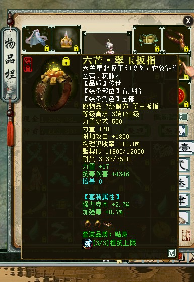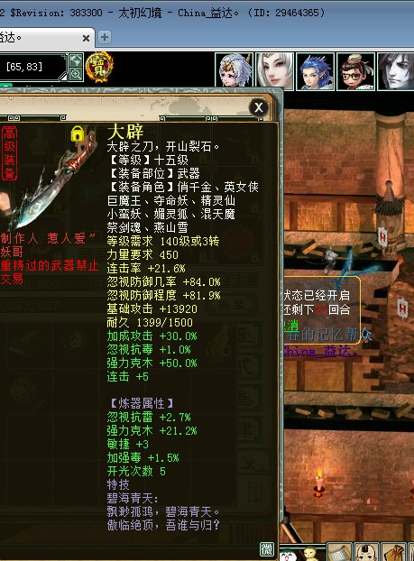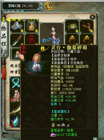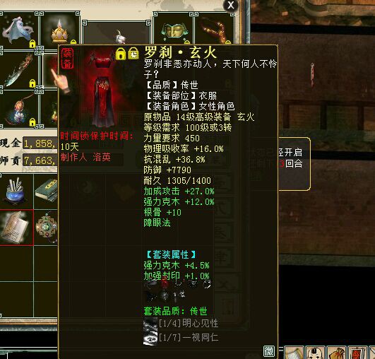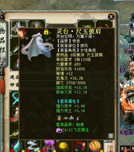 这位女魔属性挺不错,可敏,可力,平民里的极品,来自太初幻境:益达。 >>推荐阅读:大话西游2极端还是另类:神兵大力克破的玩法展示 上大力装 大浪卡战斗 不到10W功.克木255+.敏1100+ 上敏装黄金卡 克木100+ 强抽30 战斗2200左右敏 普通任务 修罗 杀T 完全够用 唯一的遗憾就是 4级连击抽上4碎了, 全功属性变大浪 克255+ 12W+功 这套装备蛮用心 [编辑:richluo]