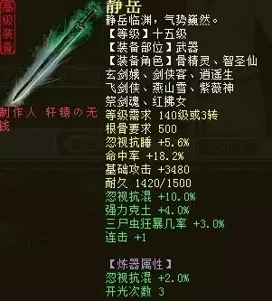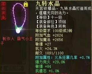 前日,一游戏好友给我发来两件自己炼化的装备,下面这俩,先看看再讲: 九转水晶: 加敏111,克火29;对于克火任务队的魔族来说还是有用的,有敏有克,抗点仙法也是不错的;那1点抗遗忘也是有用的嘛,毕竟任务魔还是需要抗遗忘的。 星辰: 看了之后,我觉得这两件装备其实还好,没有特别废嘛,这条星辰对于克木任务鬼就很好用,26灵性可以让鬼族的灵性加点更容易到达609,另外这条链子其实不算悲剧,因为我认为即使是PK鬼也用的上,比如克木队伍的霄汉鬼,对于低敏队伍来说,鬼火抗性本身就是不可或缺的。 所以:这两条链子的炼化真心不算废。 下面给大家展示几个真正的极品炼化: 讲道理,这个炼化也不算悲剧,如今有新宝石加成后,这武器也算是有用的。平民男人PK的时候睡一下还能有点忽视不是? |