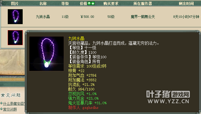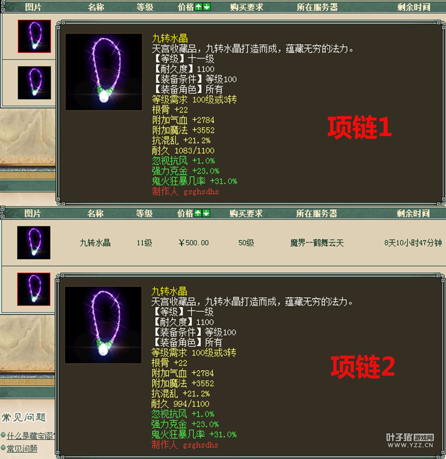 有玩家反映,他在藏宝阁上发现了一件略微诡异的事情,居然出现了两件属性完全相同的装备? 小编根据规则和价位,然后搜到了这两件装备。所以,这两条项链是同时存在的,而不是同一条项链在不同时刻的样子。 搜索规则