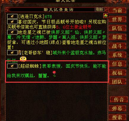 这位玩家换神兵的时刻让人碉堡了,大喊表哥表嫂国庆快乐之后...... 藕丝!藕丝!真的来了藕丝: |