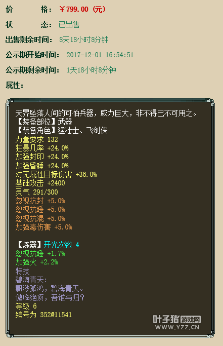 这把破炼化还不错,不过价钱略高。现在6J大力破在1W8到2W多左右,实际上在大力全盛时代可以卖到3W-5W不等,那时的大话西游被玩家戏称砍砍西游,不过现在大力时代已过去,已经很少见到大力了,以前修罗还有所谓的大力女人吃香,现在宁肯要个3毒女人都比大力强,更追求抽秒的效率,大力日渐变少,如果按照这样的趋势,大力神兵还会继续持续下降,很多喜爱大力的朋友常会感叹,大力是否还能回归全盛时代?目前这种愿望是渺茫的。