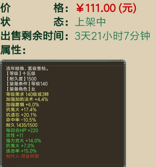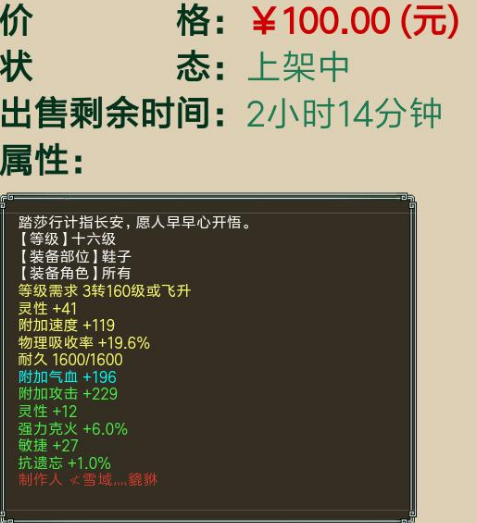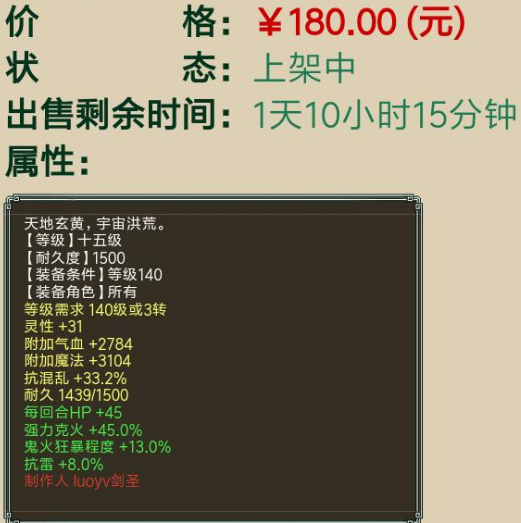 这位玩家在阁子找了一套装备宝宝的搭配,还未付款,想请教一下各位,这样的搭配是否能够随意混队了? 看看这些装备的售价以及属性先: |