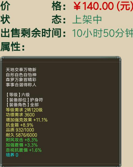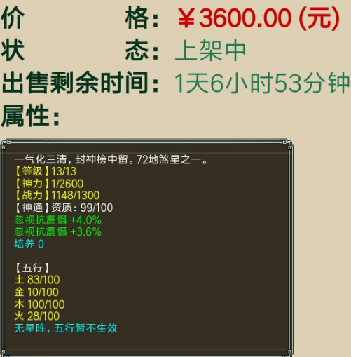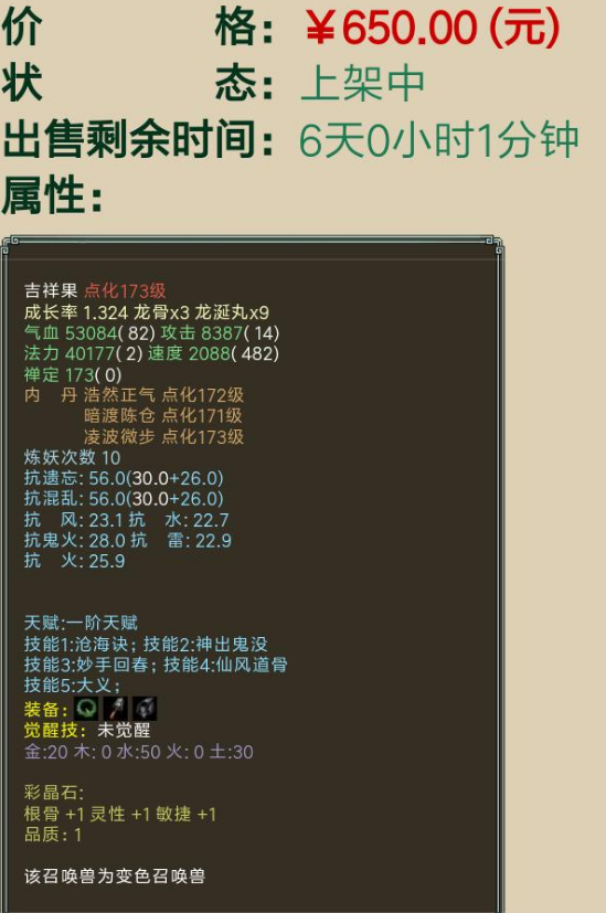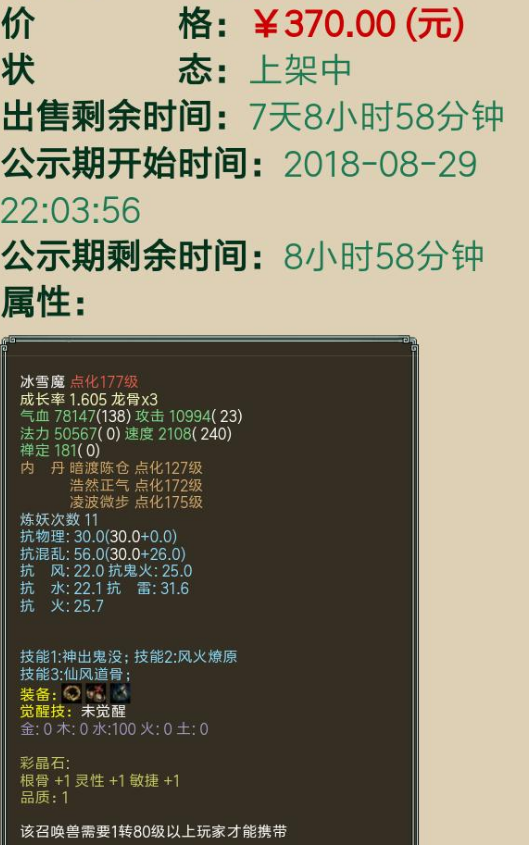 这位玩家在阁子找了一套装备宝宝的搭配,还未付款,想请教一下各位,这样的搭配是否能够随意混队了? 看看这些装备的售价以及属性先: 700元的武器属性