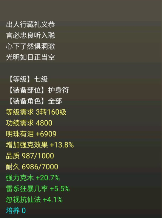 细节确实做的算不错,装备也是平民里可以拿的出手的了,这一组装备的伤害应该是不算差的,真希望这位玩家什么时候回归为大家展示他的伤害。 [编辑:宁财神]