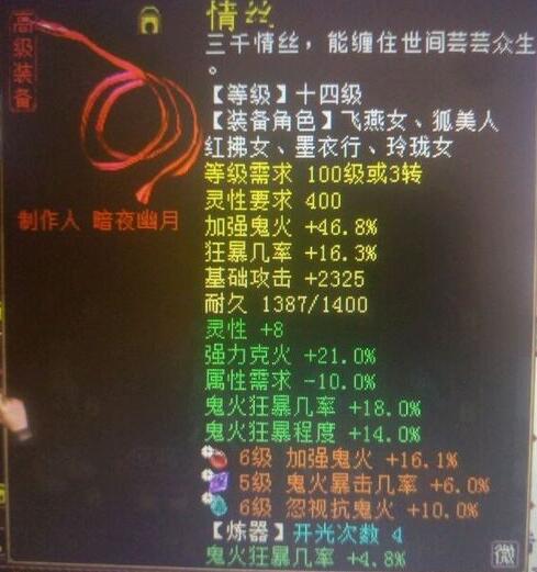 一头青丝,一手情丝,一名女鬼,一位佳人,看看这个手持十四级武器的女鬼,伤害是否能令人肝肠寸断! |