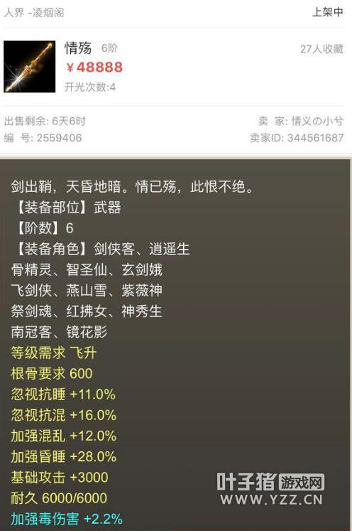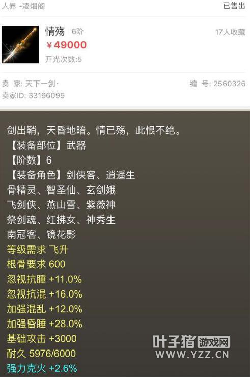 大话西游2三把六阶仙器属性相同 为何最贵的先卖出