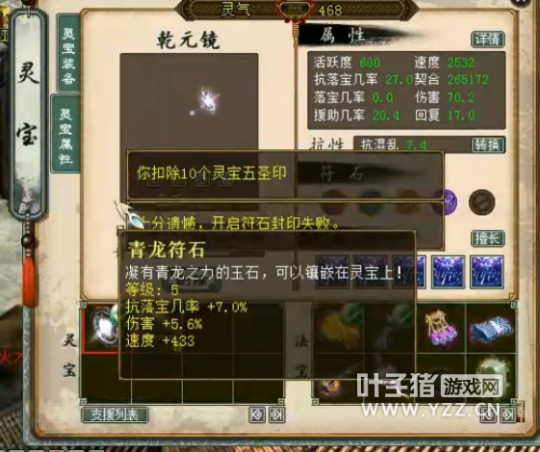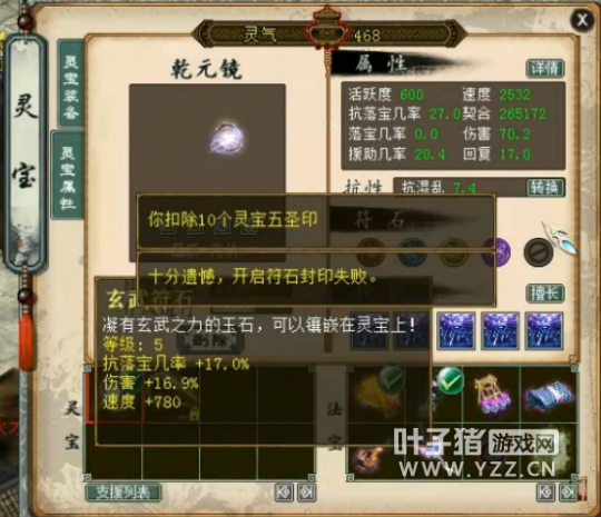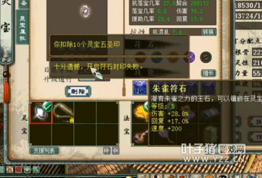 要知道,现在好多咱们平民玩家带的灵宝的符石孔都是自然开启到4格子的,五格子开启几率太低且人为开启花费巨大,今天一位玩家直播开启灵宝五符石孔,来看看几率如何。