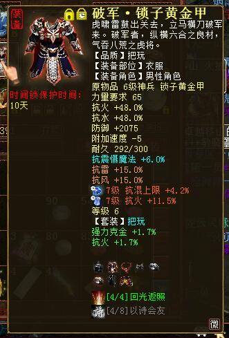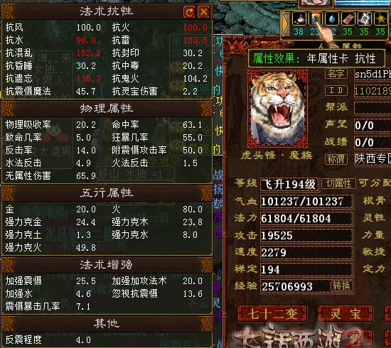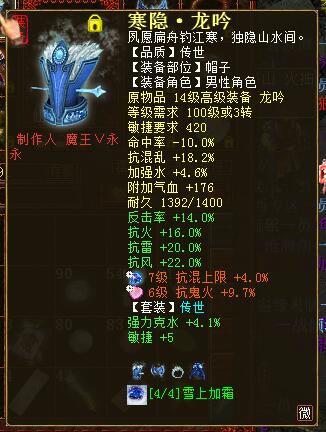 昨日那位虎头壕魔,今天带来了第二套装备属性,站街不变卡5抗仙法鬼火满,看看这套装备的搭配怎么样: |