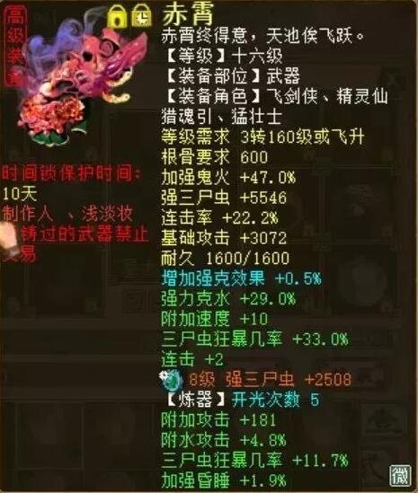 三尸的伤害比一般人鬼火还高,这男鬼有点厉害了,重要的是身上还没仙器! 欣赏一下这位男鬼的表现和装备: |