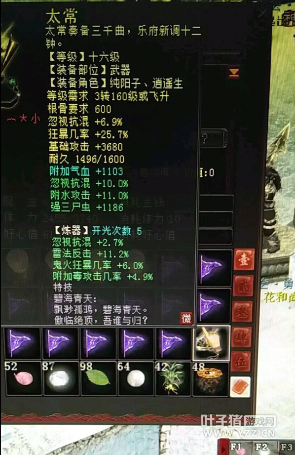 某幸运之子晒出的图以及自白,我感觉我们玩的不是一个游戏。 他说他觉得不能再低调了,之前十次出正骨没截图,这次的十次双忽分外香,一组开光5和4次炼器就显得黯然失色了。来看看到底什么情况? |