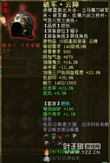 衣服:回血程度23-24,20-200元,可以不要克或者自己洗克14配合强克队伍 帽子:回血程度23-24,20-200元,非克:20-50,低级召唤兽特技:80元,高克200多元 |
