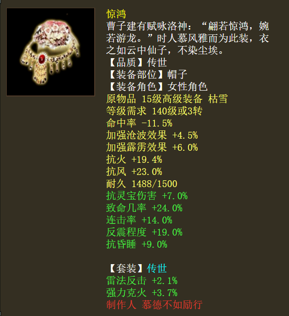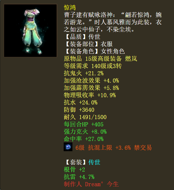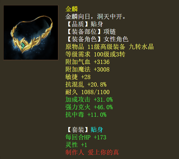 惊鸿配金麟的四阶小女龙,虽然已上阁子,但看这装备搭配,玩的时候应该相当不错哦!